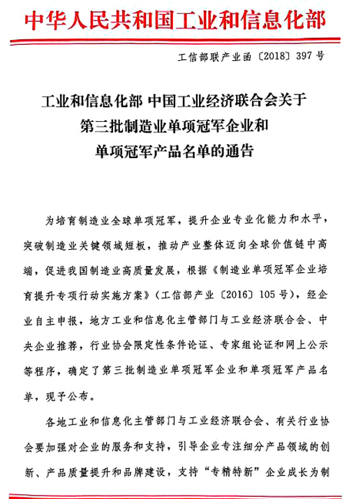 什么是制造業單項冠軍?按照工信部的定義:“長期專注于制造業某些細分產品市場,生產技術或工藝國際領先,單項產品市場占有率位居全球或國內前列的企業。”
