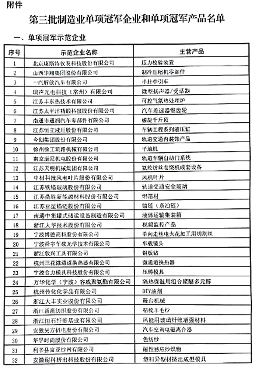 據了解,從2016年開始,中國制造業單項冠軍三批示范企業共有193家,第一批54家,第二批71家,第三批68家。