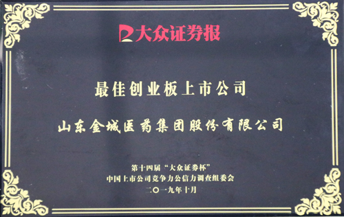 金城醫(yī)藥再獲“最佳創(chuàng)業(yè)板上市公司”榮譽(yù)