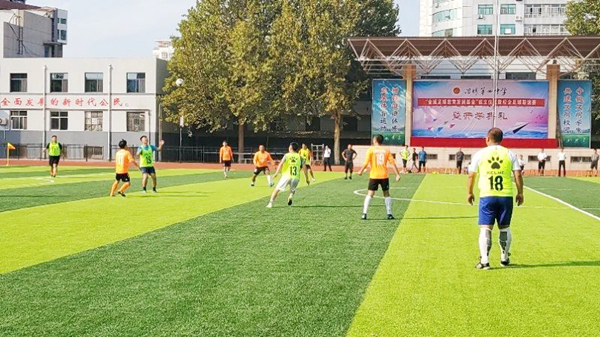 此次在淄博市第四中學(xué)設(shè)立足球教育發(fā)展基金,目的就是精準(zhǔn)支持校園足球發(fā)展,致力培養(yǎng)更多足球?qū)I(yè)人才,是公司支持教育事業(yè)、支持校園足球發(fā)展的又一公益舉措。簽約儀式后,為慶祝第36個(gè)教師節(jié),金城醫(yī)藥集團(tuán)足球隊(duì)與淄博第四中學(xué)教職工隊(duì),舉行了一場(chǎng)足球友誼賽。