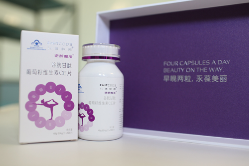 本品是以谷胱甘肽、葡萄籽提取物、維生素C(L-抗壞血酸)、維生素E(dl-α-醋酸生育酚)、糊精、蔗糖、羥丙甲纖維素、羥丙纖維素、聚乙二醇6000、硬脂酸鎂、薄膜包衣劑(羥丙甲纖維素、三乙酸甘油酯、二氧化鈦、日落黃鋁色淀、胭脂紅鋁色淀、滑石粉)為主要原料制成的保健品,經動物和人體試食功能試驗證明,具有抗氧化的保健功能。