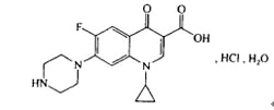 【成份】 本品主要成份為:鹽酸環丙沙星。其Chemical Name為:1-環丙基-6-氟-1,4-二氫-4-氧代-7-(1-哌嗪基)-3-喹啉羧酸鹽酸鹽一水合物。